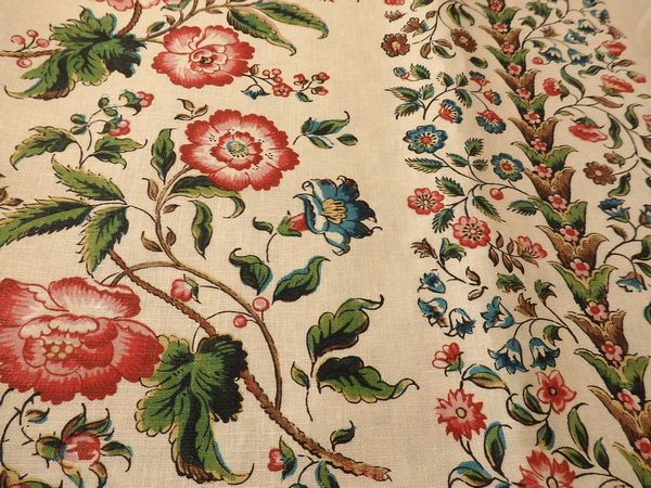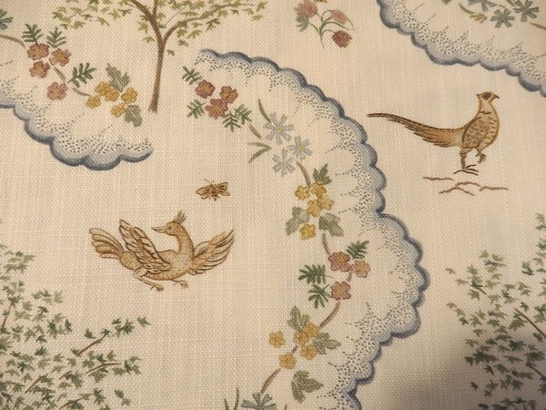 チャールズ国王50歳の記念に贈られたパーゴラをバラとクレマチスが彩るモチーフで描いたリネン100%の Rose Pergola なめらかな肌触り・吊るした時のさらりとした落ち感・光の通し具合素晴らしいです。