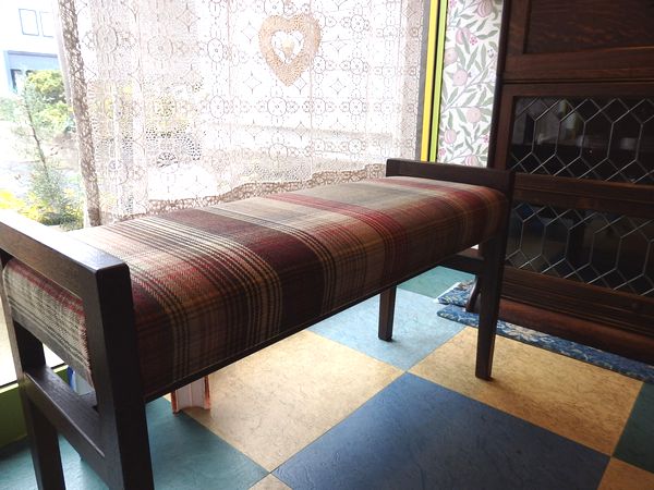 オリジナルで造作しているスツールのなかには長椅子もあります。長いといっても W88㎝ 今回はチェックの生地で巻き込みました。温かみのある色・柄・質感はこれからの季節にぴったり。なかなか探せない大人なチェック、素敵です。 カテゴリー: お店のこと