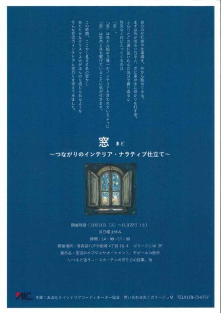 自分の住む家や仕事場を、外から眺めてみる。何気なく目に入ってくるのは 「窓」。*県内で活躍するコーディネーター協会の会員さんたちの楽しい提案と展示です。期間中はガラージュM2階の壁紙やキリムの重ね敷なども…ご覧いただけます。 カテゴリー: お店のこと
